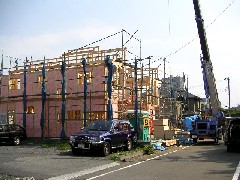 本日は木造建て方です。この日は建売3棟現場の2棟を建てましたが前面道路が自由に使えたので助かりました。鳶さんお疲れ様でした。