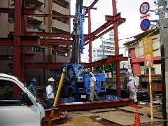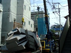 今日は新築マンションの現場で鉄骨建て方作業です。前面道路の真ん中に電柱があり、かわすために基礎の中に自分とトラックの分の通路を作ってから作業に入りました。2日間の予定で今日の分は無事に終了しました。鉄骨屋さん、鳶さん、1日お疲れ様でした。