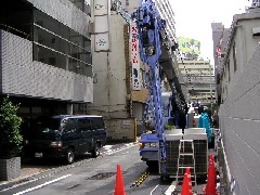 本日は6階屋上の室外機交換作業です。セットバックが大きく、距離が出る為前面道路をお借りして2段ジブ作業になりました。朝からあいにくのお天気でしたが、作業時は上がり助かりました。皆さんお疲れ様でした。有難うございました。