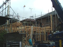 本日は木造注文住宅の建て方作業です。現場までの進入路があまり広くなかったので注意して入りました。作業はこれといったことも無く無事上棟、皆さんお疲れ様でした。お施主様上棟おめでとうございます。