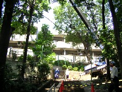 本日は家屋の建て替えの為の剪定伐採作業です。高低差のある斜面の敷地でクレーンは入れず、また近隣の生活道路である階段通路を確保しているので作業半径はかなり出るところです。アウトリガー下の養生を万全にして作業開始、この日は階段沿いの樫の剪定を行いました。造園屋さんお疲れ様でした。明日も宜しくお願い致します。