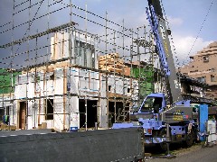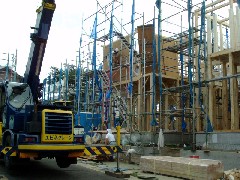 本日は木造建て方です。先行足場が上まで上がっていて奥の一部が届かなかったですが概ね作業は出来、助かりました。大工さん一日お疲れ様でした。