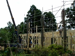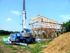 今日は木造建て方作業の現場です。広い敷地の中で作業はやりやすかったです。完成時は馬術の練習場になるそうです。大変に蒸し暑い1日でした、大工さん、監督さん、お疲れ様でした。
