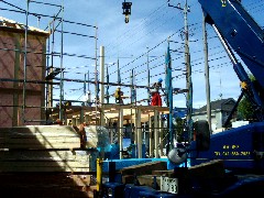 引き続き特高下、木造建て方最後の棟です。送電線監視員の見守る中慎重に作業致しました。揚程が取れないのでかなりきついところもありましたが無事作業完了いたしました。。とても暑い1日でしたが皆さんお疲れ様でした。また宜しくお願い致します。