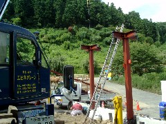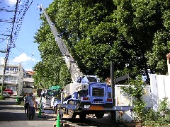 本日は神社内樫の剪定と枯れてしまったさわらの伐採作業です。神主さんがいらして朝御払いをしてからの作業はとても気持ちがいいものです。前面道路がかなりきつい坂なのでアウトリガー下を養生し水平をとるのに苦労致しました。造園屋さんお疲れ様でした。また宜しくお願い致します。
