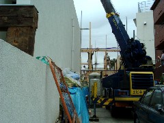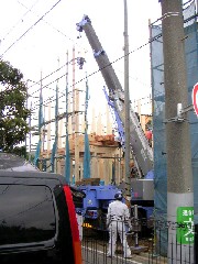 今日は植樹作業の現場です。電線の下からの作業で、大きい植木は送り込むのに神経を使いました。高木は今日の搬入と建て込みで全て終わりました。造園屋さん1日お疲れ様でした。