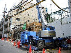 今日はRC現場で鉄筋のスラブ材の搬入作業です。先週の土曜に梁材を揚げた現場で、今日は鉄板を段取りし直して電線をかわせるようにセットしました。次回からの作業は少し楽になるでしょう。鉄筋屋さん、鳶さん、監督さん、ガードマンさん、1日お疲れ様でした。