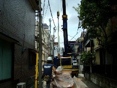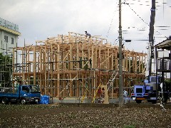 本日は狭い路地での木造3階建て建て方作業です。現場側電線もあり 鳶さんと打ち合わせしながら作業順序を工夫して何とか棟上できました。職方の皆様御協力有難うございました、皆さんお疲れ様でした。お施主様上棟おめでとうございます。