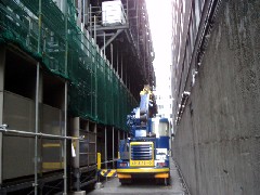 本日は架台の上に室外機を据え付ける作業です。クレーン設置場所がこの通路しかなく弊社でもこの小旋回クレーンでなければ作業不可能なところでした。何箇所か設置変えの後、無事すべての据付を完了。皆さんお疲れ様でした。