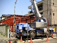 本日は鉄骨の建て方作業です。前面に電線があり、なるべく建物に寄せてクレーン設置荷取りに若干難がありましたが予定の作業は時間内にこなすことが出来ました。皆さんお疲れ様でした。