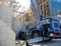 本日はツーバイパネル住宅の建て方です。奥行きもあり脇に進入、旋回出幅一杯の作業でしたが無事こなすことが出来ました。皆さんお疲れ様でした。明日も宜しくお願い致します。