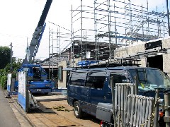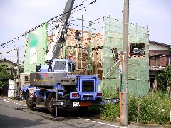 今日は集合住宅の建て方作業です。敷地の中に入っての作業です。今日は2階の床まで無事に作業を終えました。職人さん1日お疲れさまでした。
