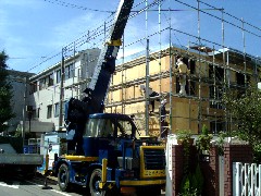 先週に続きツーバイパネル住宅の建て方です。この日は狭い脇での作業を終わらせ、前面道路から残りの部分の作業に移り無事建て終えることが出来ました。皆さんお疲れ様でした。有難うございました。。