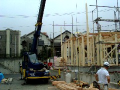 本日は木造の建て方です。前面足場が空けてあるのでとてもやりやすいところでした。皆さんお疲れ様でした。有難うございました。