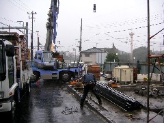 この日は朝から雨でしたがプレハブの解体作業を行いました。鉄道の沿道なので時折吹く風に注意しながら作業致しました。皆さんお疲れ様でした。