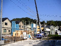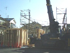 本日はツーバイパネル住宅の建て方です。クレーン側足場は後施工なので起伏角を有効に生かして作業できました。フレーマーの皆様お疲れ様でした。