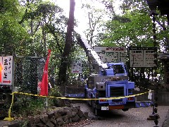 引き続き樹木の剪定、伐採作業です。今年の度重なる強風を伴う台風の襲来でお堂裏の土が崩れ倒木の危険性のある樹を伐採していきました。クレーンが侵入できないところなので2段ジブを使い、作業半径は出ましたが山師さんと打ち合わせ重量目測で刻んで頂き予定の作業をこなすことが出来ました。皆さんお疲れ様でした。また宜しくお願い致します。