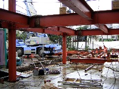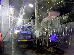この日は一日雨でしたが、夜ビームの撤去作業もありました。水銀灯の向きが悪くオペハウスのガラスをはずしたくなるような作業条件でしたが時々顔を出しながら注意して作業致しました。皆さんお疲れ様でした。有難うございました。
