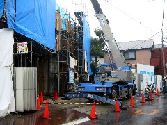 本日は鉄骨建て方の前段取りで材料の荷受振り分け作業です。あいにくのお天気でしたが無事予定の作業は行えました。鳶さんお疲れ様でした。
