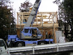 本日は木造建て方作業です。前面道路からの作業になりましたが坂の為、角材を井下駄に組水平取り致しました。朝から雨でしたが無事棟を上げることが出来ました。皆さんお疲れ様でした。お施主様上棟おめでとうございます。