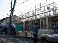 今日は集合住宅の木造建て方作業の現場です。大きな建物でジブを出して作業を行いました。電線の内側で作業が出来たのが幸いです。無事に棟が上がりました。大工さん1日お疲れさまです。御施主様上棟おめでとうございます。