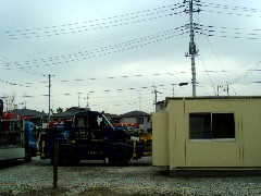 本日は仮設事務所の設置作業です。これから始まる開発地だそうで、広い敷地の隅に据付ました。皆さんお疲れ様でした。