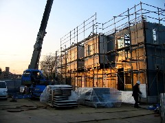 今日は集合住宅の建て方作業の現場で、2階部分と屋根を建てました。広い敷地で条件の良い現場で作業も順調に進み、屋根パネルも全部取り付けました。職人さん、1日お疲れさまでした。
