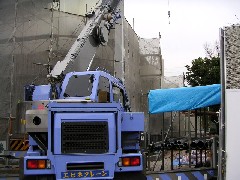 今日も昨日の引き続きの現場です。今日はR階への搬入がメインなのでジブを出しての作業になりました。外部足場は正面以外は今日で全て仮設が終了しました、鳶さん、監督さん、3日間お疲れさまでした。