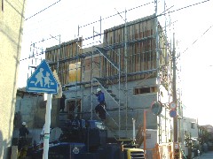 今日はプレハブ建て方作業の現場です。税務署の広い駐車場が現場で、年明けから年度末に向けての確定申告用の仮設事務所に使うそうです。躯体は無事に建ちました、職人さん1日お疲れさまでした。