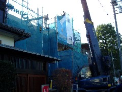 今日は工場兼住宅の新築現場で材料の搬入作業でした。全面道路が広い一方通行で現場側に電線があるので道路の反対側からの作業です。吊り込み作業中はガードマンさんに車を止めてもらい安全に作業を行いました。鉄筋屋さん、大工さん、ガードマンさん、1日お疲れさまでした。