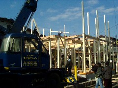 本日は木造建て方です。奥行きのある建物でしたが後足場がなので助かりました。皆さんお疲れ様でした。お施主様上棟おめでとうございます。